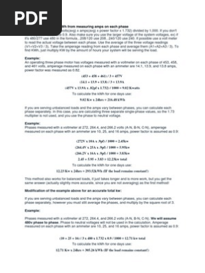 To Calculate 3 Phase Kwh From Measuring Amps On Each Phase Pdf Kilowatt Hour Voltage